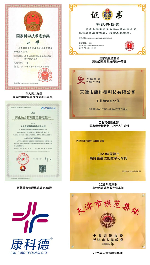 1996年9月17日天津市康科德科技有限公司成立,專注高純化學(xué)試劑研制、開發(fā)和生產(chǎn)。主要產(chǎn)品包括高純色譜試劑、卡爾費(fèi)休試劑、無水溶劑、高純?nèi)軇┑?。主要服?wù)于制藥、石化、科研、高校等行業(yè)和領(lǐng)域。29年來,榮獲國家科技進(jìn)步二等獎(jiǎng)1項(xiàng),國家質(zhì)監(jiān)總局科技興檢一等獎(jiǎng)1項(xiàng)??悼频鲁砷L為國家級(jí)專精特新“小巨人”,獲市級(jí)智能制造示范項(xiàng)目、先進(jìn)級(jí)智能工廠、天津市模范集體等多項(xiàng)殊榮,產(chǎn)品替代進(jìn)口并出口30個(gè)國家和地區(qū)。這離不開各方支持,我們心懷感恩,砥礪前行。