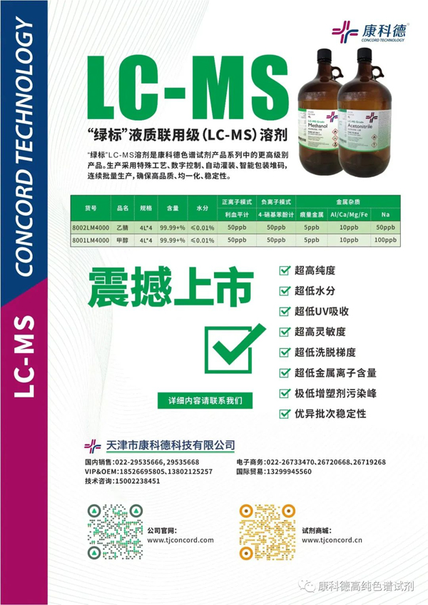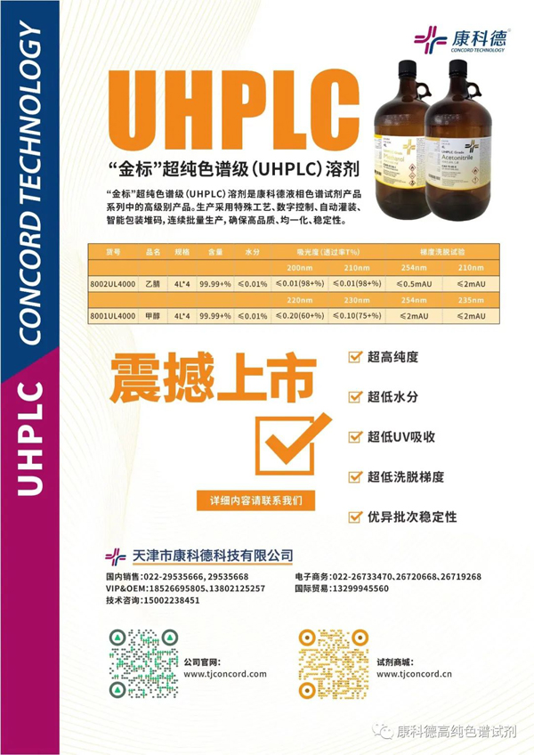 天津市康科德科技有限公司高純色譜溶劑新產(chǎn)品震撼上市,重磅推出液質(zhì)聯(lián)用級(jí)(LC-MS)試劑和超純色譜級(jí)(UHPLC)試劑四款新產(chǎn)品。這是康科德公司“高純色譜試劑產(chǎn)學(xué)研示范項(xiàng)目”的新技術(shù)成果,技術(shù)指標(biāo)和產(chǎn)品質(zhì)量,實(shí)現(xiàn)進(jìn)口替代和多國(guó)出口,解決了高純色譜溶劑“卡脖子”問(wèn)題。