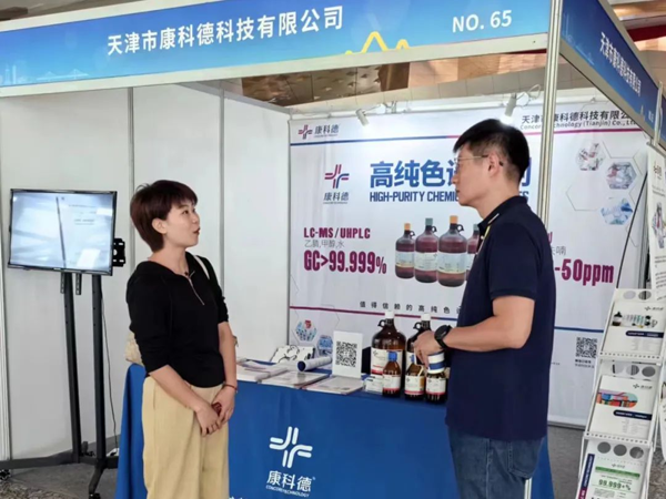 康科德液質(zhì)聯(lián)用級(jí)甲醇、超純色譜級(jí)乙腈、色譜純梯度級(jí)乙腈、無(wú)甲醇乙醇、卡式試劑等系列產(chǎn)品參會(huì)展出,產(chǎn)品技術(shù)指標(biāo)均一化、穩(wěn)定性和超高純度等特點(diǎn),吸引了眾多專(zhuān)家老師的關(guān)注與咨詢(xún),康科德工作人員與專(zhuān)家老師們進(jìn)行了深入的技術(shù)交流和咨詢(xún)洽談,在現(xiàn)場(chǎng)即達(dá)成了合作。